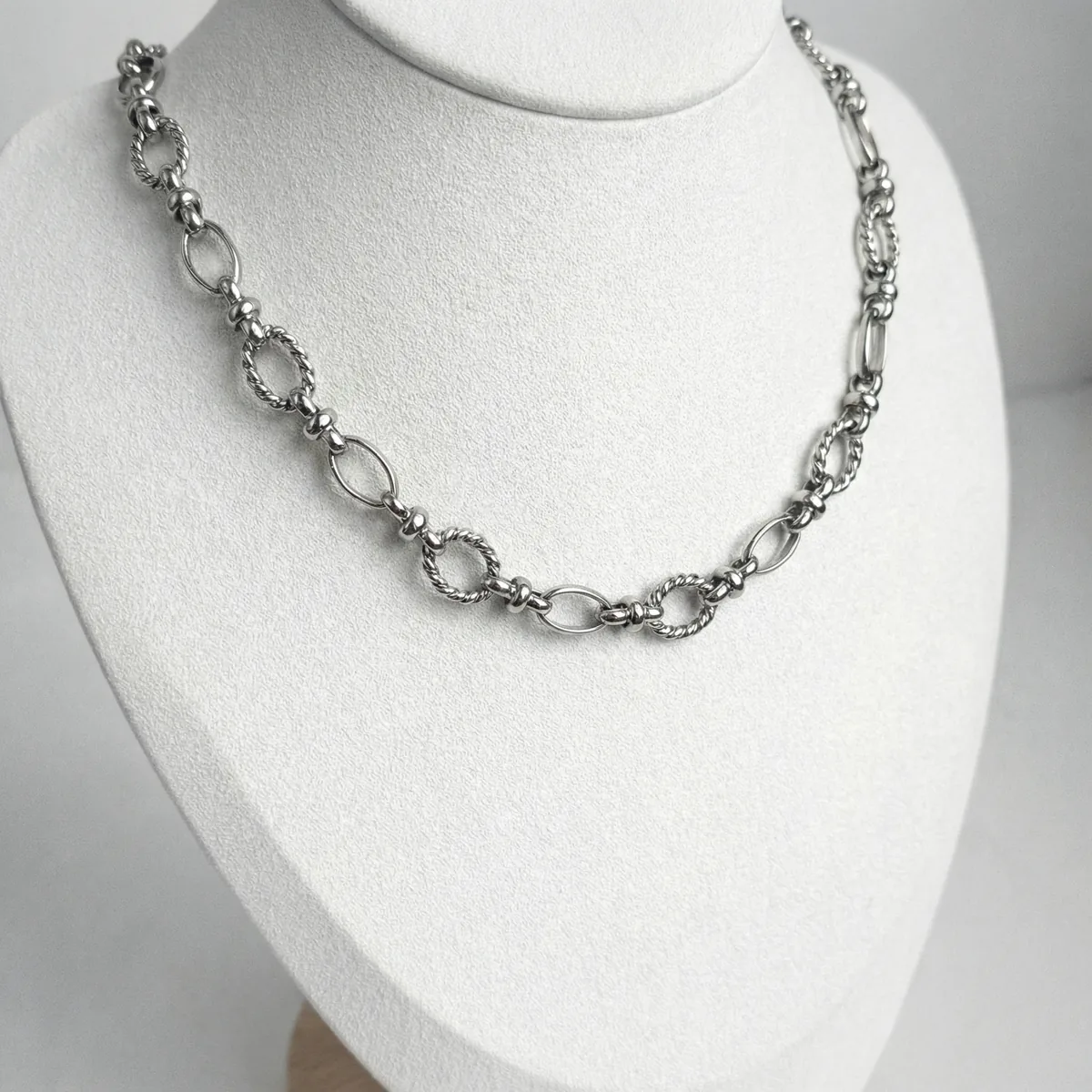 Цепь «Империал» из коллекции «Эссенс» — стильное базовое украшение с овальными рельефными звеньями и сияющим серебристым покрытием. Лаконичный и выразительный дизайн делает изделие современной классикой. Цепь отлично смотрится как самостоятельное украшение, а также может служить основой для многослойных комбинаций с другими аксессуарами. Серебристый блеск родия придаёт украшению особую элегантность и актуальность.