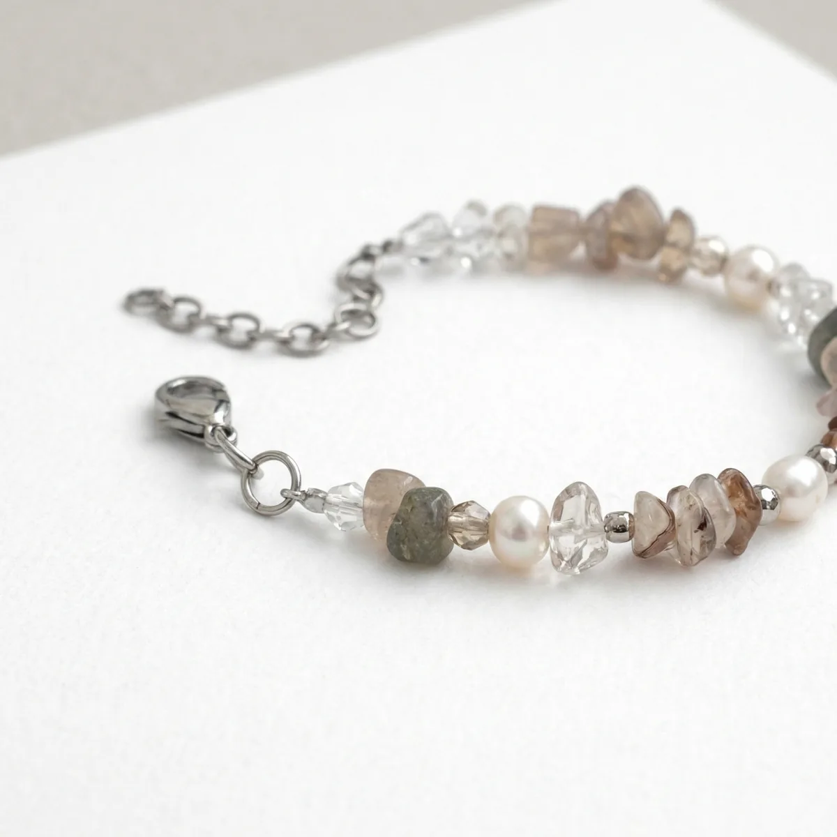 Браслет «Агат Ботсвана» — стильное украшение на каждый день с натуральным агатом Ботсвана, горным хрусталём, жемчугом и серебристыми акцентами. Сдержанные природные оттенки камня придают браслету универсальность и лёгкость: он органично дополнит как светлый гардероб, так и базовые образы всех сезонов.