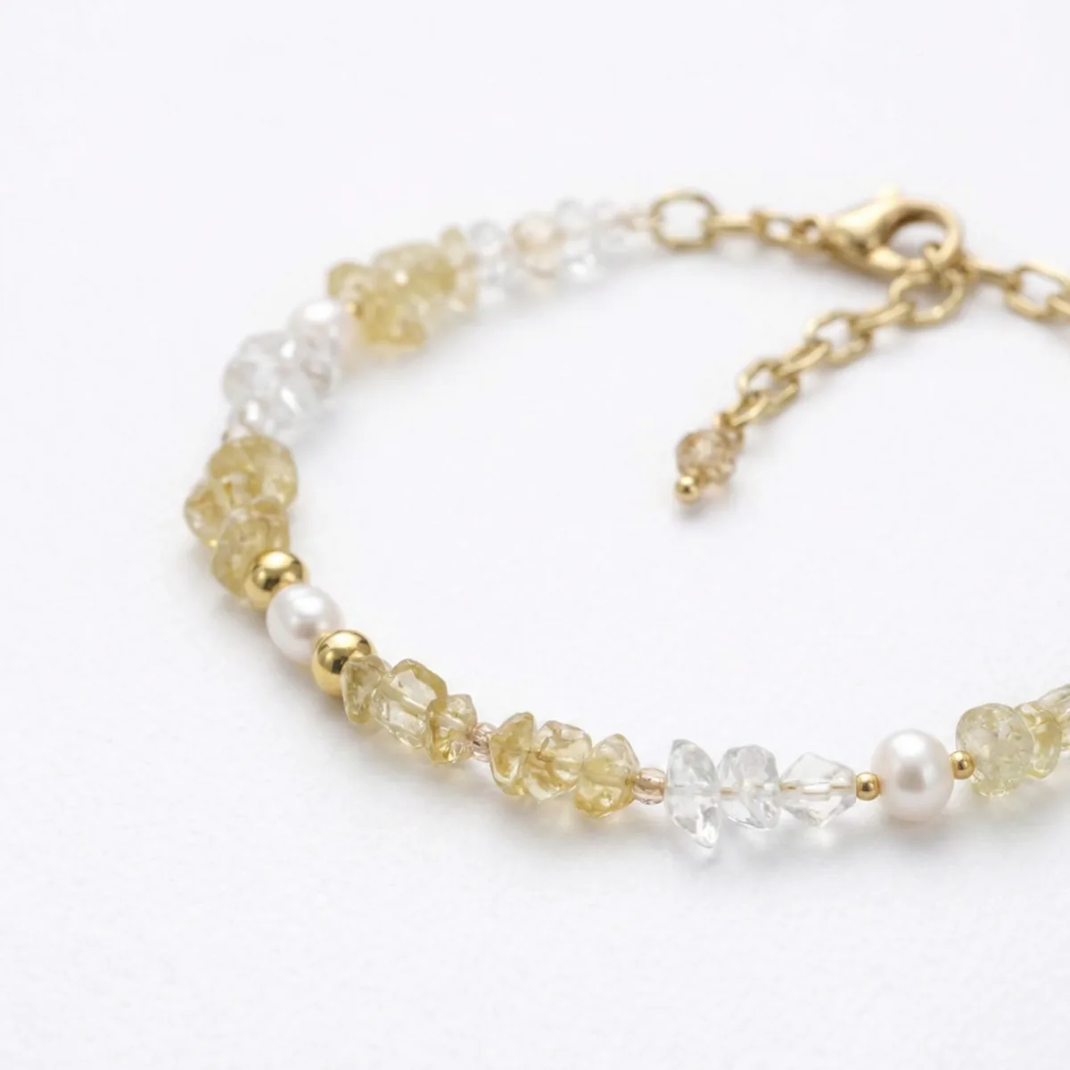 Браслет «Цитрин» — солнечное и яркое украшение из натурального цитрина лимонных оттенков, горного хрусталя, жемчуга и золотистых элементов. Прозрачные камни с золотистым сиянием создают лёгкий и праздничный акцент, подходящий для летних, повседневных и вечерних образов.