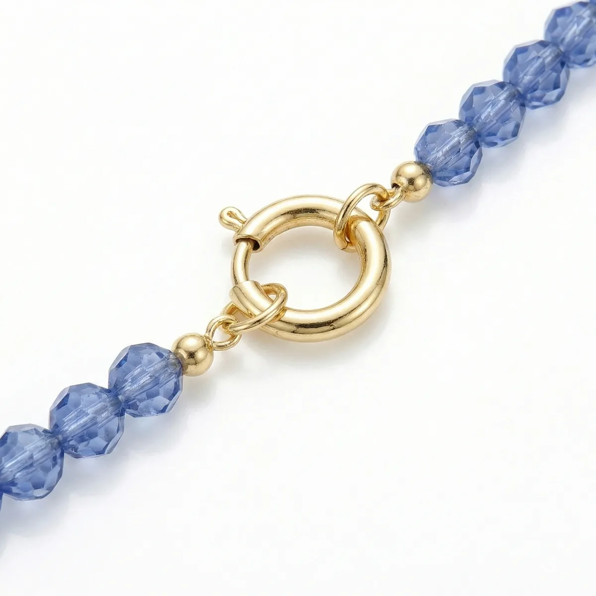 Лёгкий чокер из хрустальных бусин насыщенного лазурно-синего оттенка. Глубокий цвет и деликатное мерцание фасетированных граней красиво ловят свет и добавляют образу выразительности — без тяжести и лишней яркости.