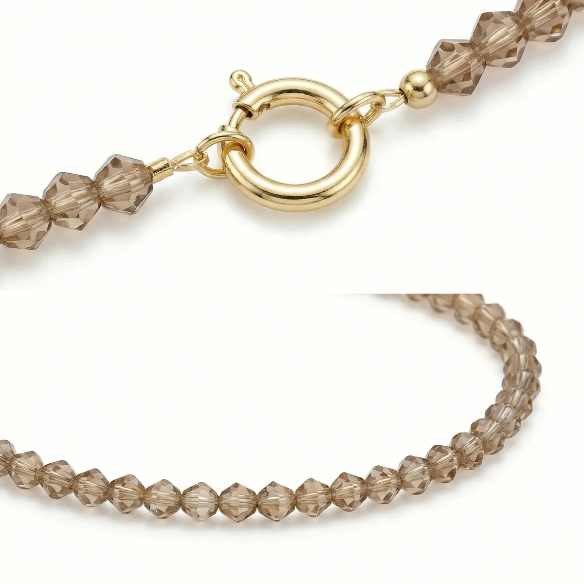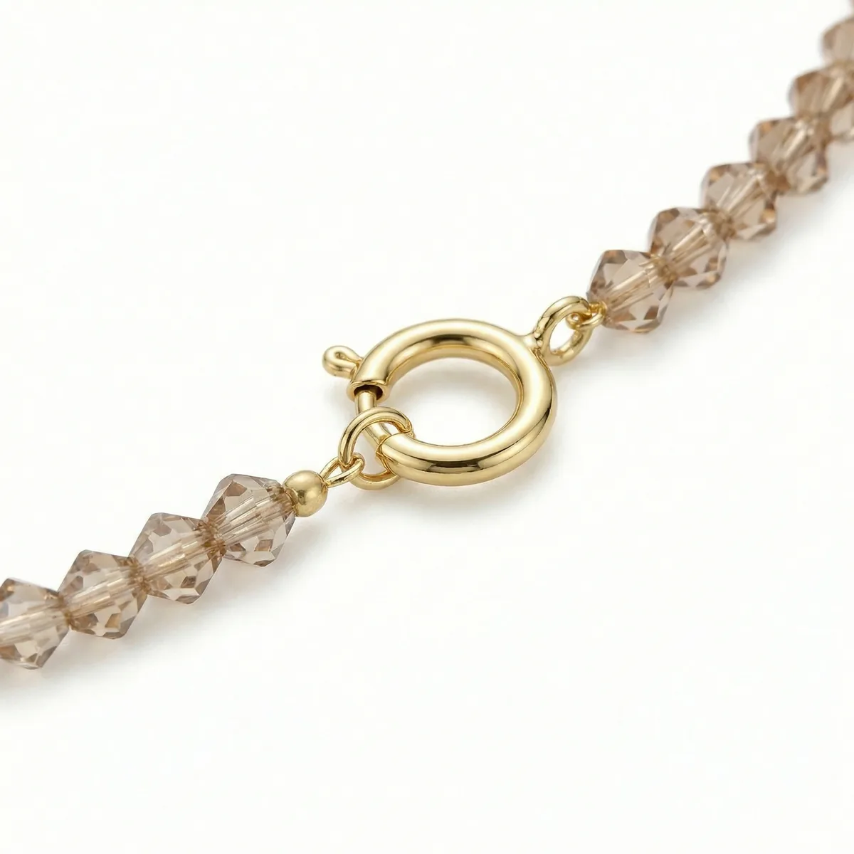 Лёгкий чокер из хрустальных бусин тёплого персикового оттенка. Мягкий нюд с золотистым подтоном и деликатное сияние фасетированных граней красиво ловят свет и подчёркивают тон кожи, добавляя образу нежности и ухоженности.