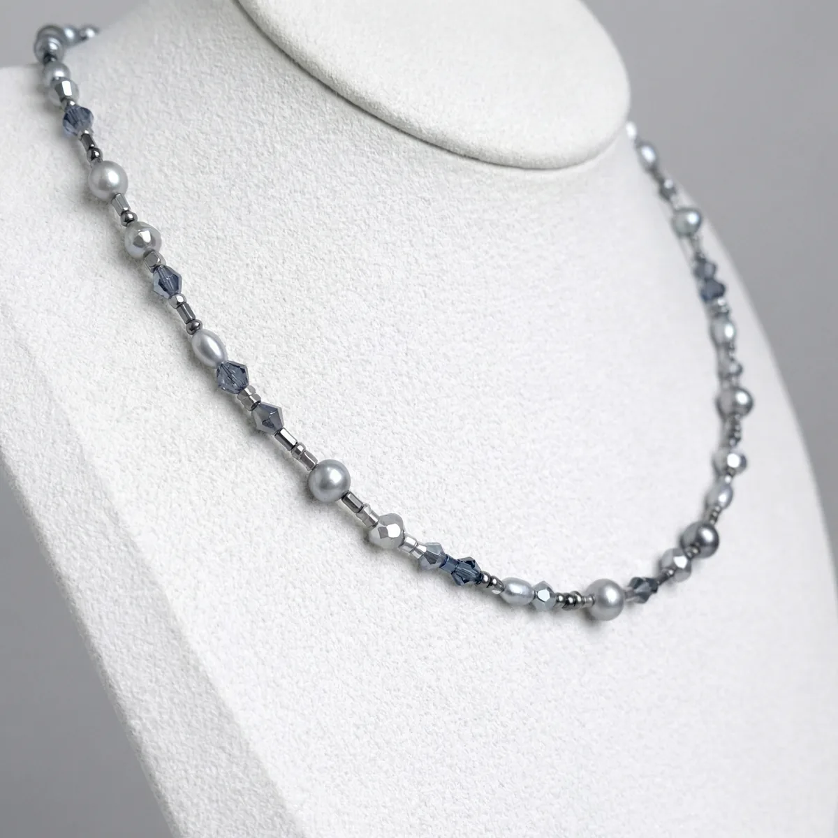 Чокер «Серый» из коллекции «Попкорн» — элегантное украшение, изготовленное из натурального жемчуга, жемчуга майорка и хрустальных бусин на ювелирной нити. Серый перламутровый оттенок жемчуга и прозрачное сияние хрусталя делают аксессуар сдержанным, универсальным и современным. Идеален для деловых, повседневных и вечерних образов.
