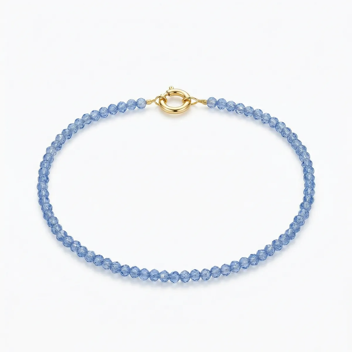 Лёгкий чокер из хрустальных бусин нежного светло-синего оттенка. Небесный, прозрачный цвет и деликатное сияние фасетированных граней не только украсят любой образ, но и создадут ощущение спокойствия и утончённости.