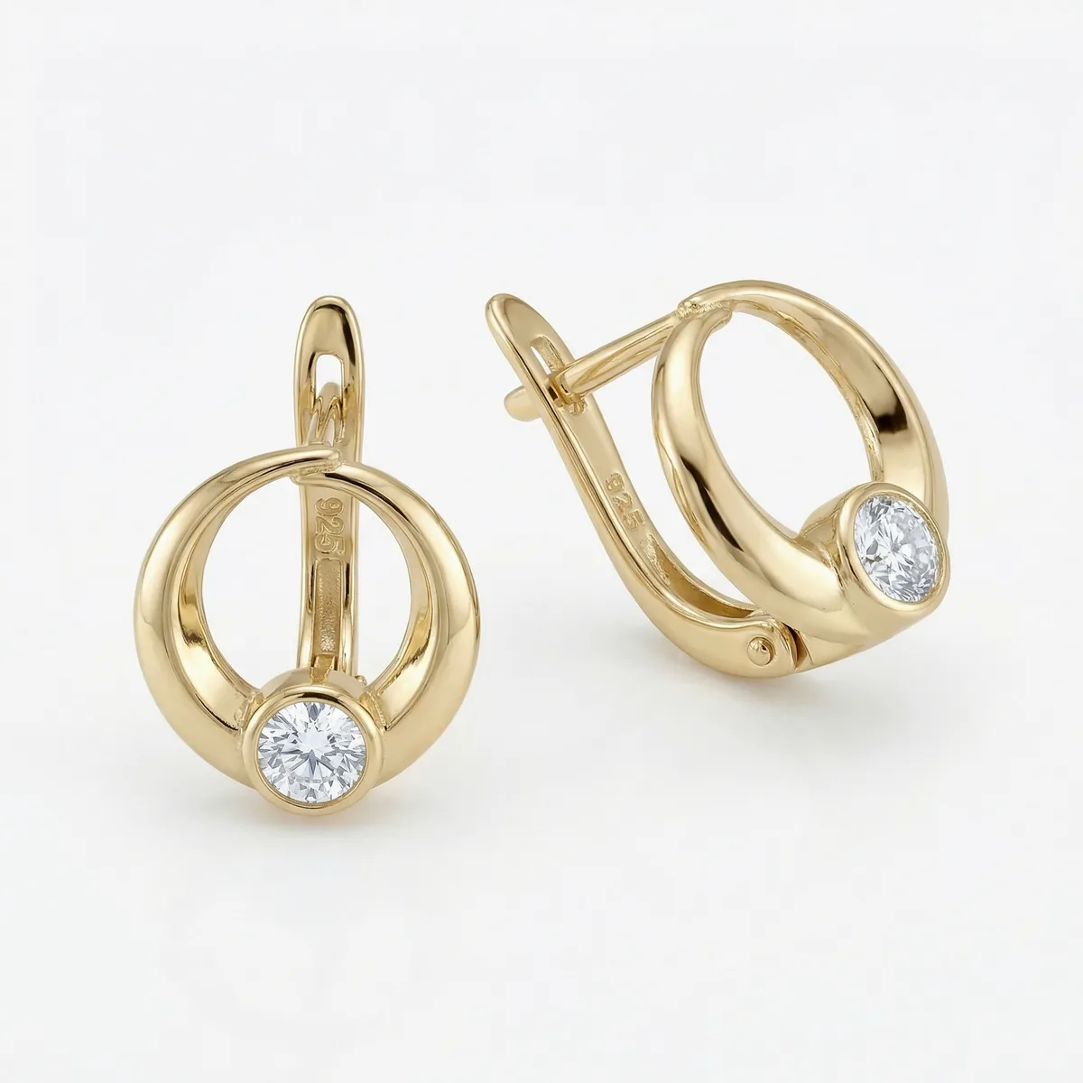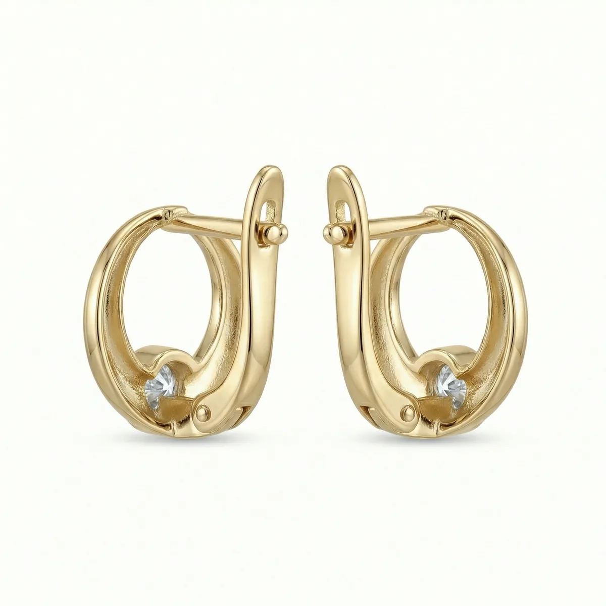 Серьги «Луна» в золоте — элегантное украшение округлой формы с изысканным сияющим кристаллом в центре. Дизайн напоминает утонченную лунную дугу, что придаёт украшению особое очарование. Золотистое покрытие делает изделие максимально универсальным и легко сочетаемым как с вечерними, так и с повседневными нарядами. Блестящий кристалл ловит свет при каждом движении, акцентируя женственность и стиль.