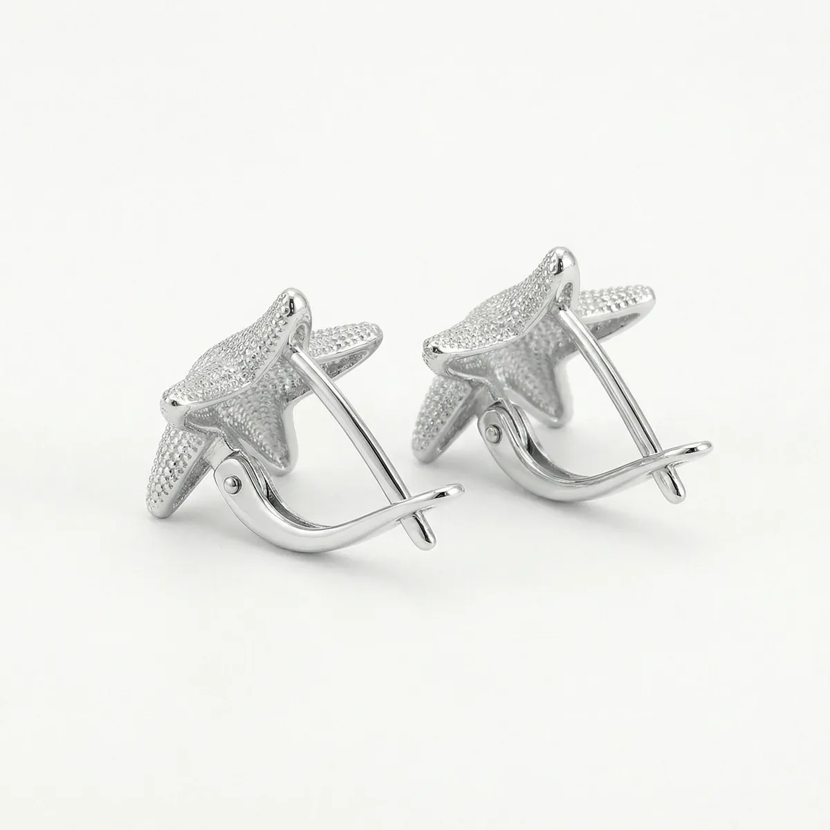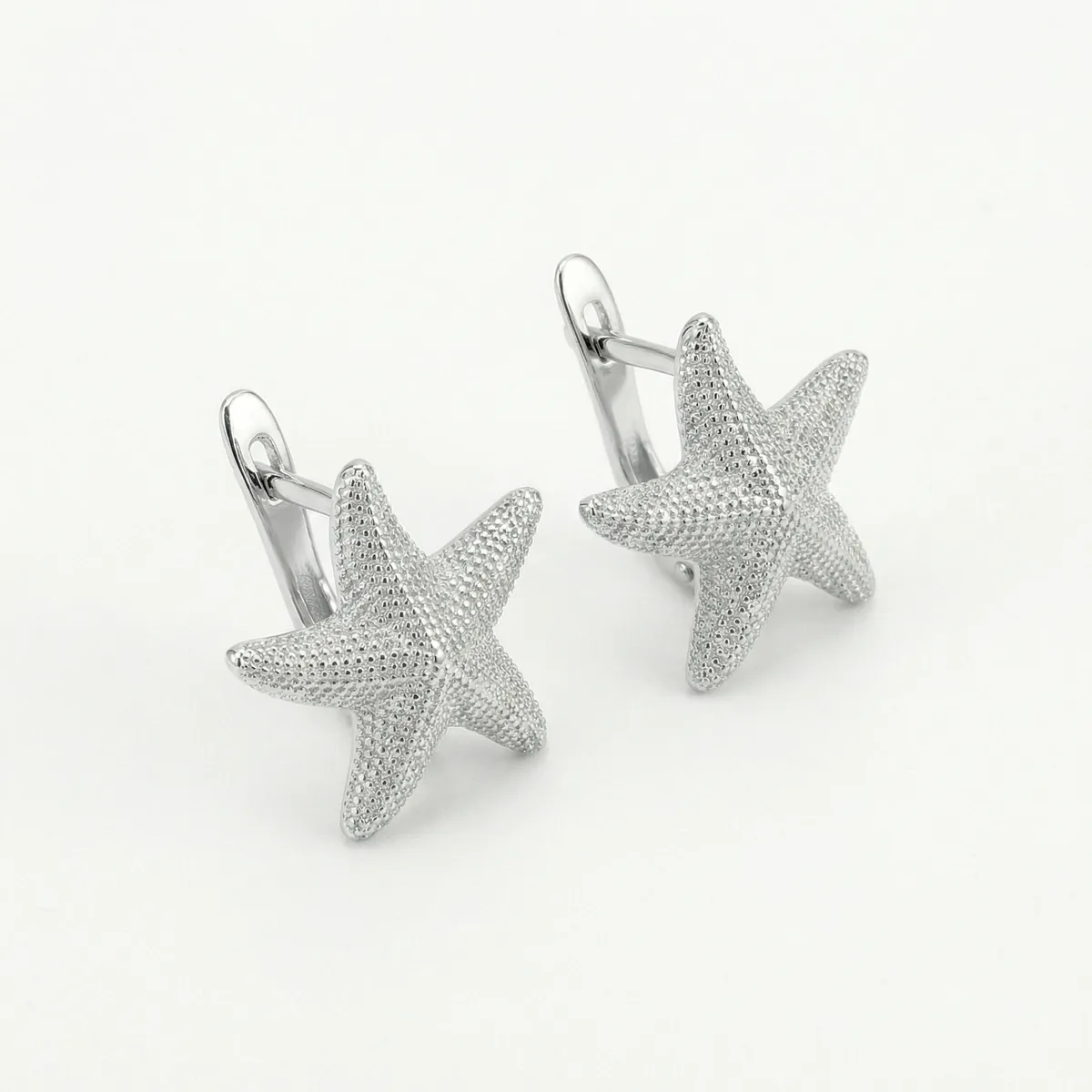 Серьги «Морская звезда» — стильные акцентные украшения в форме морских звёзд с изящной фактурной поверхностью. Родиевое покрытие придаёт украшениям благородный серебристый блеск и защищает их от потускнения. Нестандартный дизайн вдохновлён морской тематикой и добавляет образу особый шарм и летнее настроение. Такие серьги станут прекрасной деталью как для городских, так и для курортных луков. Надёжный английский замок обеспечивает комфортную посадку.