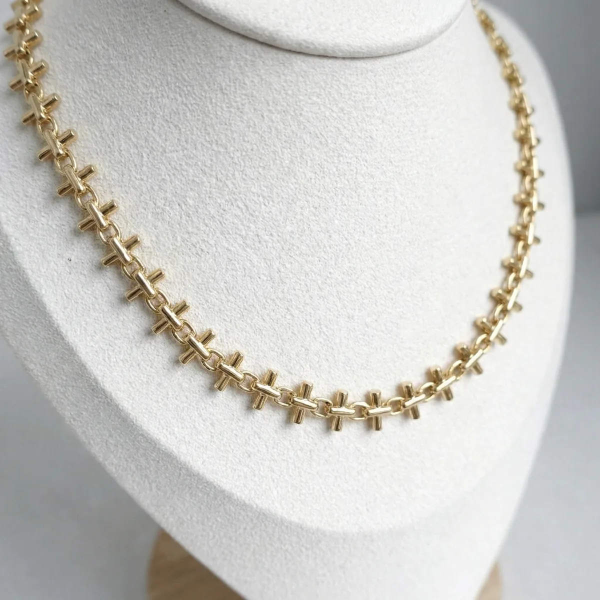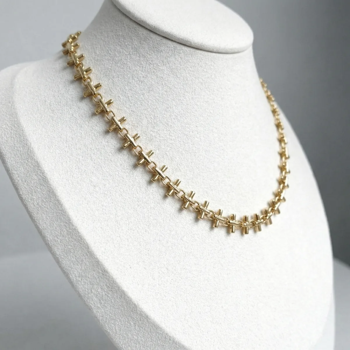 Цепь «Астра» из коллекции «Эссенс» — оригинальное и яркое украшение с выразительными звеньями, напоминающими лучики или миниатюрные звездочки. Благодаря необычной структуре и золотистому покрытию украшение цепляет взгляд и становится акцентным элементом любого образа. «Астра» прекрасно дополнит вечерний или нарядный комплект, а также послужит стильной деталью в современной повседневности.