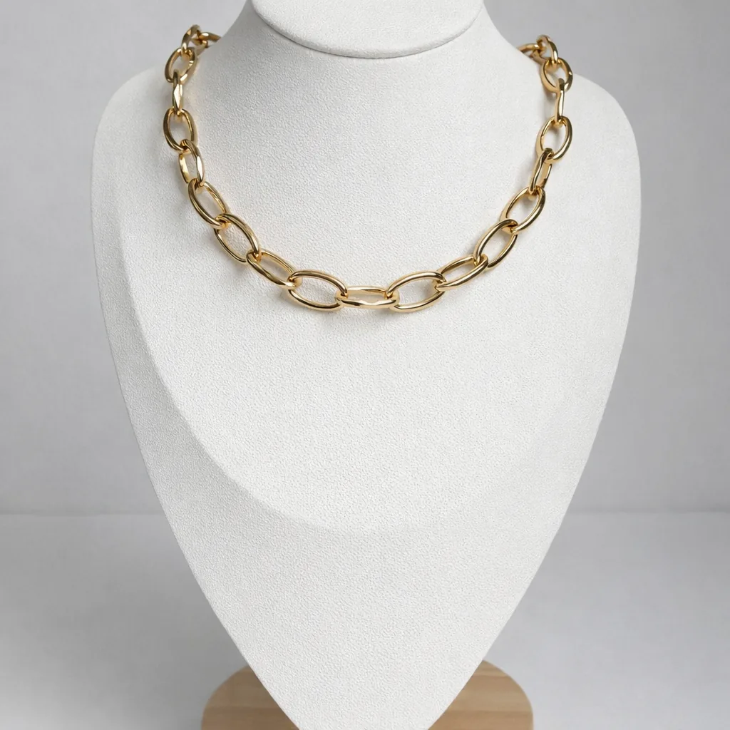 Цепь «Грейс» из коллекции «Эссенс» — универсальное украшение с крупными гладкими овальными звеньями, покрытыми золотом. Эффектный и современный дизайн делает эту цепь стильной основой любого образа. Она отлично смотрится как самостоятельный акцент, так и в сочетании с другим минималистичным или классическим гардеробом. «Грейс» придаёт образу изысканность и базовую элегантность.