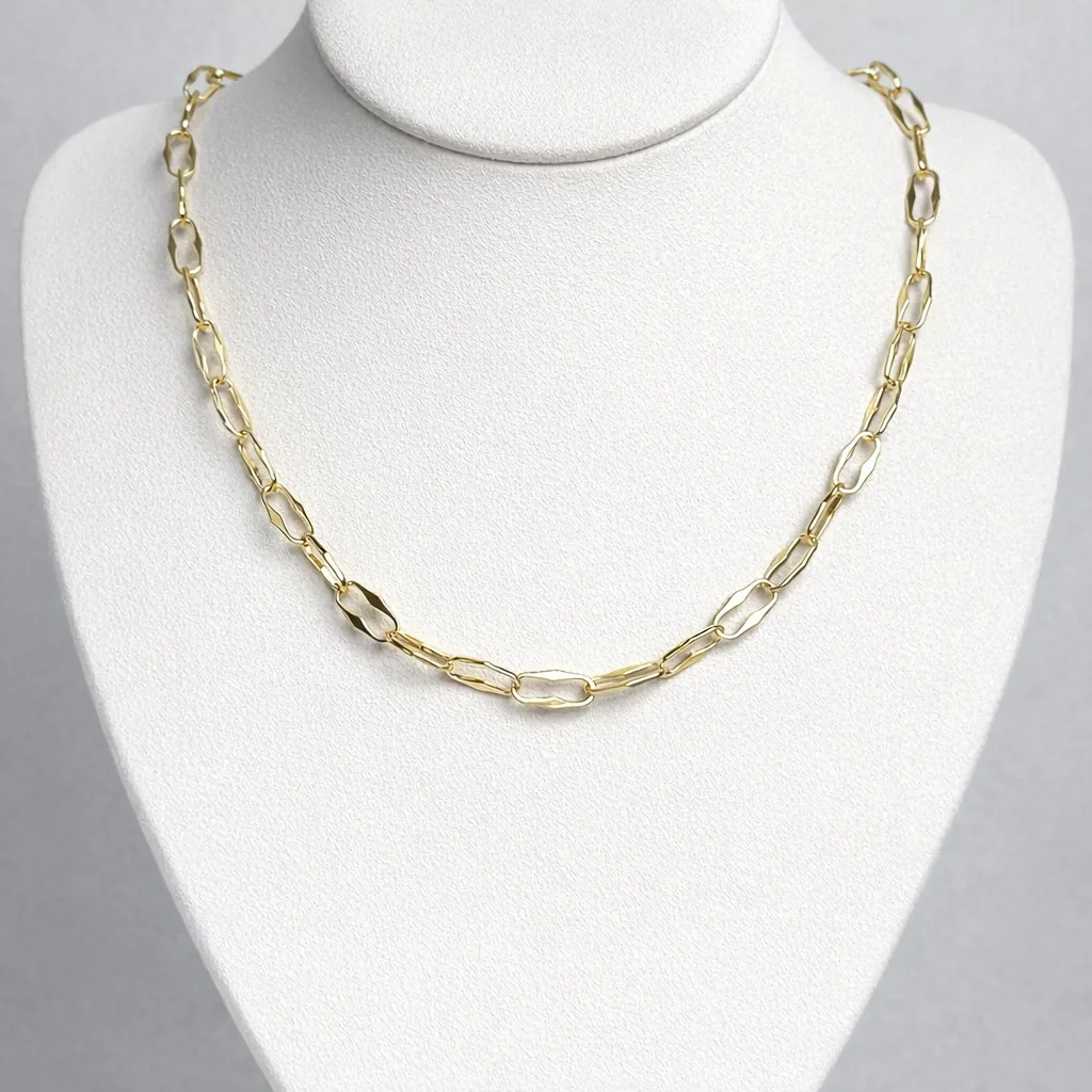 Цепь «Баланс» из коллекции «Эссенс» — минималистичное базовое украшение с аккуратными удлинёнными звеньями, покрытыми золотом. Элегантный и универсальный дизайн позволяет сочетать цепь как с повседневной, так и с деловой или вечерней одеждой. «Баланс» идеально подойдёт для самостоятельного ношения или создания многослойных композиций с другими украшениями из коллекции.