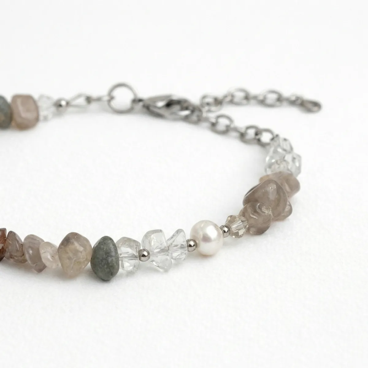 Браслет «Агат Ботсвана» — стильное украшение на каждый день с натуральным агатом Ботсвана, горным хрусталём, жемчугом и серебристыми акцентами. Сдержанные природные оттенки камня придают браслету универсальность и лёгкость: он органично дополнит как светлый гардероб, так и базовые образы всех сезонов.