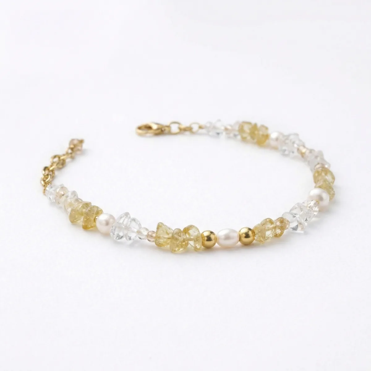 Браслет «Цитрин» — солнечное и яркое украшение из натурального цитрина лимонных оттенков, горного хрусталя, жемчуга и золотистых элементов. Прозрачные камни с золотистым сиянием создают лёгкий и праздничный акцент, подходящий для летних, повседневных и вечерних образов.