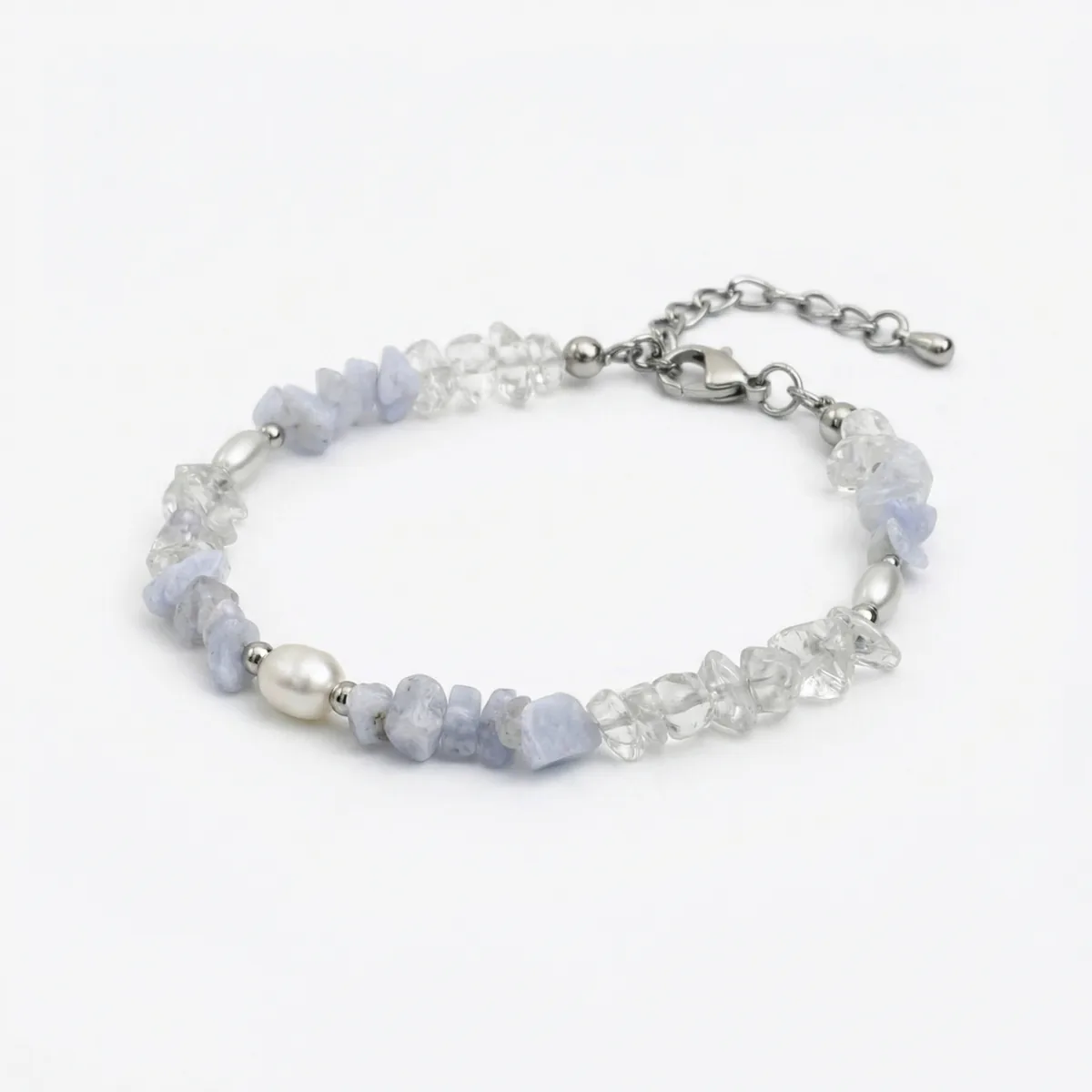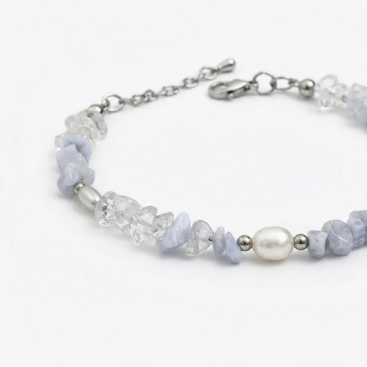 Голубой агат, горный хрусталь, жемчуг