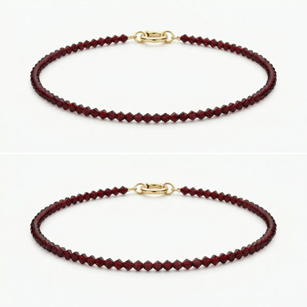 Лаконичный чокер, выполненный из хрустальных бусин глубокого бордового оттенка. Благородный цвет и изысканное сияние хрусталя делают это украшение универсальным акцентом для любого образа — от повседневного до вечернего.