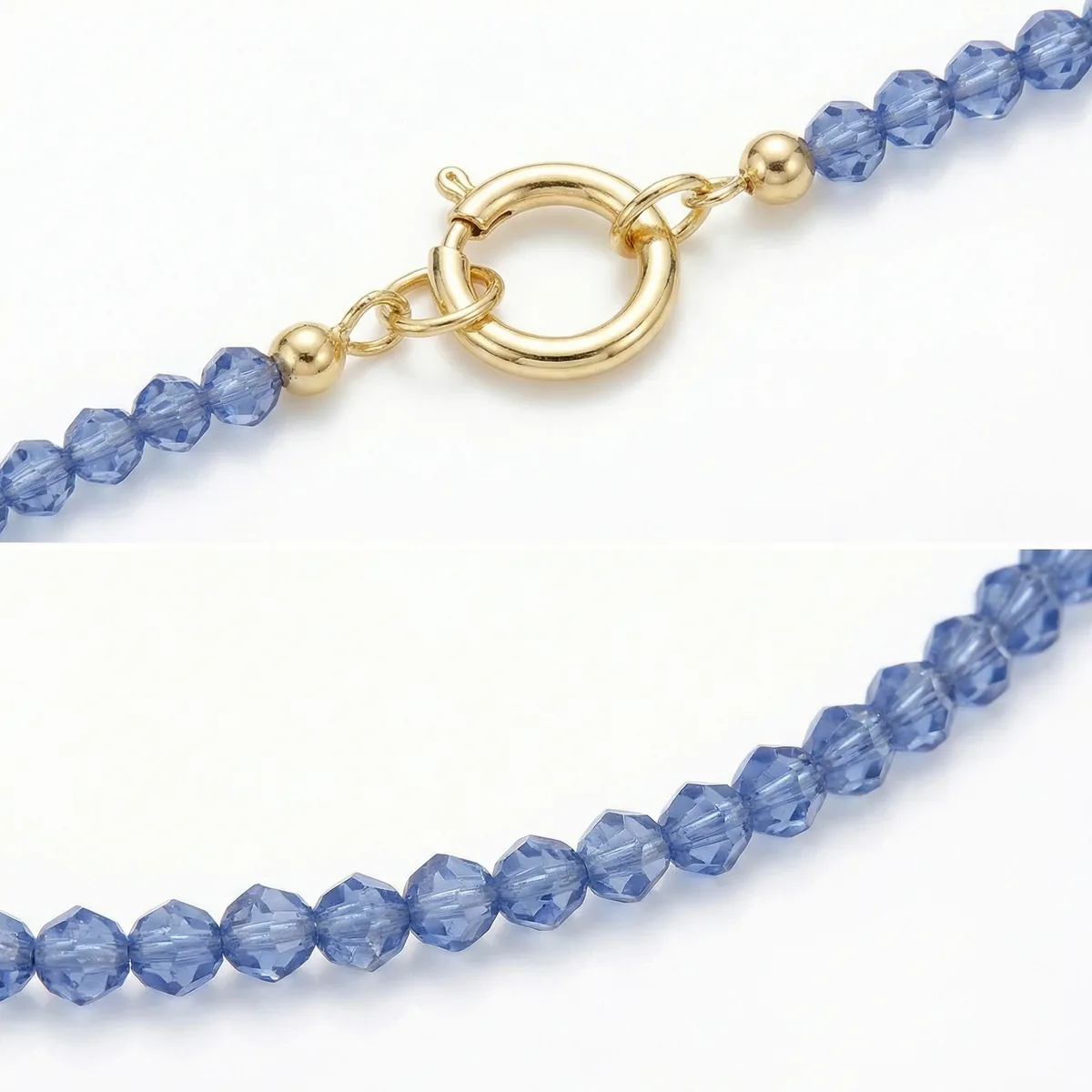 Лёгкий чокер из хрустальных бусин насыщенного лазурно-синего оттенка. Глубокий цвет и деликатное мерцание фасетированных граней красиво ловят свет и добавляют образу выразительности — без тяжести и лишней яркости.