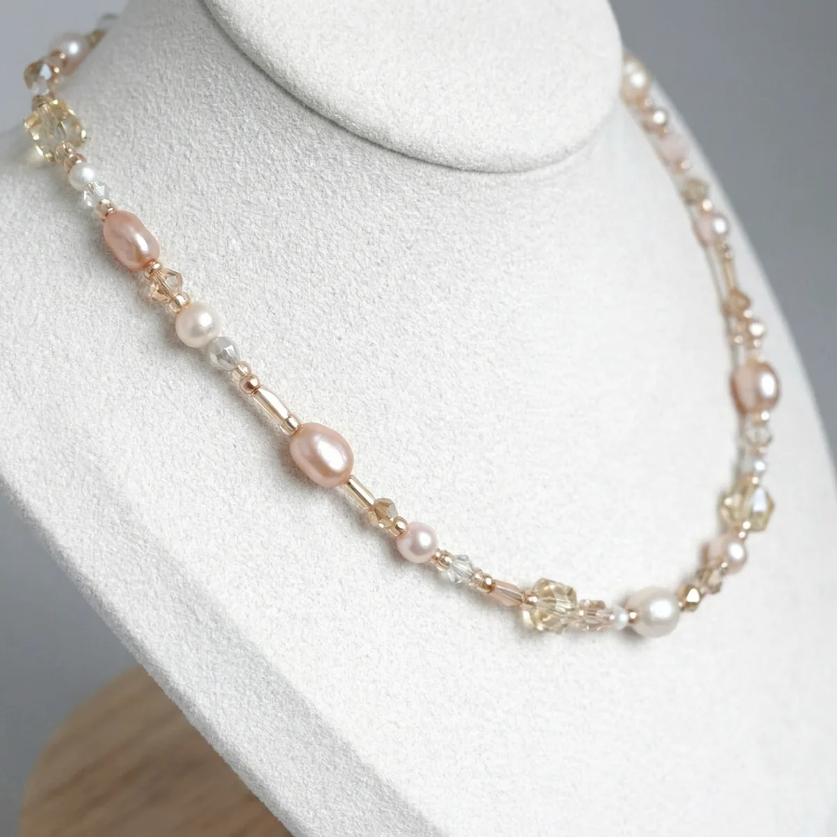 Чокер «Персик» из коллекции «Попкорн» — нежное украшение, выполненное из натурального жемчуга, жемчуга майорка и хрустальных бусин в тёплой персиковой и золотистой гамме. Искрящиеся детали и сочные оттенки жемчуга придают украшению мягкий акцент и утонченное сияние, которое подчеркнёт индивидуальность вашего образа, добавит женственности и солнечного настроения как в повседневных комплектах, так и в особых случаях.