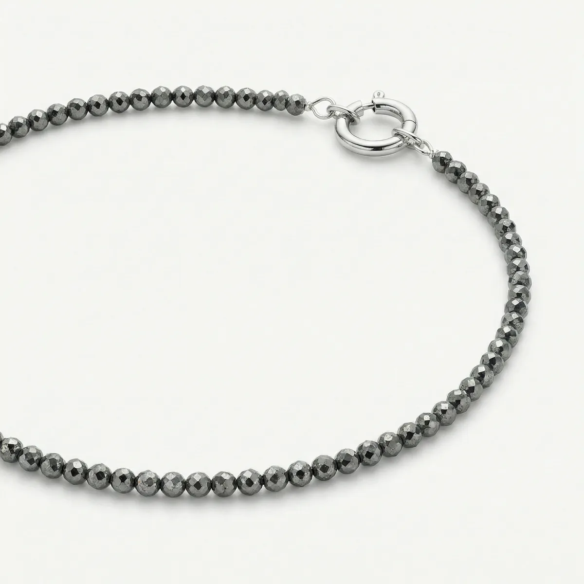 Современный чокер из хрустальных бусин с эффектом металлик — в холодном серебристом оттенке. Яркий блеск и минималистичный дизайн делают это украшение универсальным решением для создания стильных повседневных и вечерних образов.