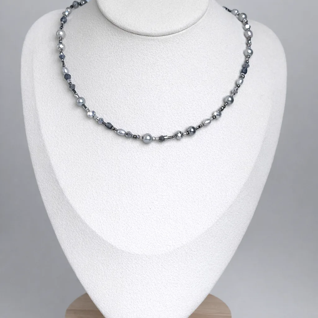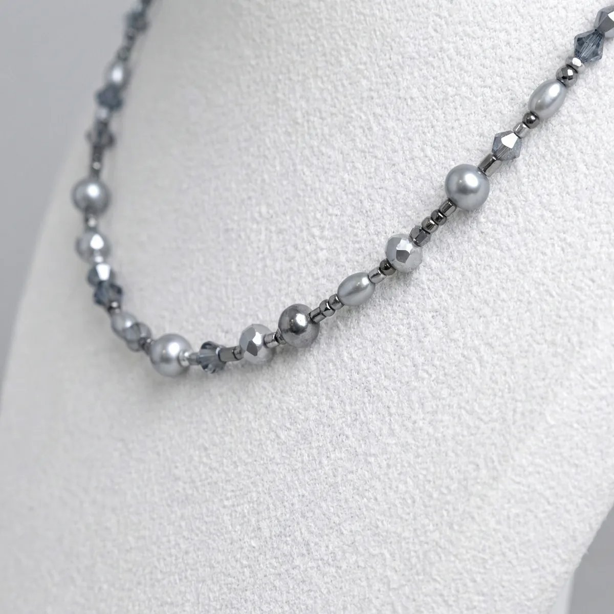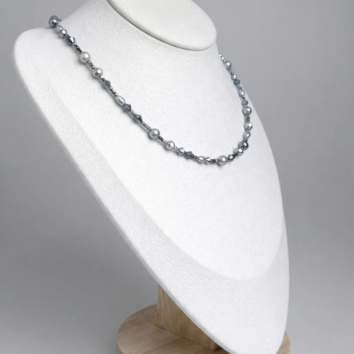 Чокер «Серый» из коллекции «Попкорн» — элегантное украшение, изготовленное из натурального жемчуга, жемчуга майорка и хрустальных бусин на ювелирной нити. Серый перламутровый оттенок жемчуга и прозрачное сияние хрусталя делают аксессуар сдержанным, универсальным и современным. Идеален для деловых, повседневных и вечерних образов.