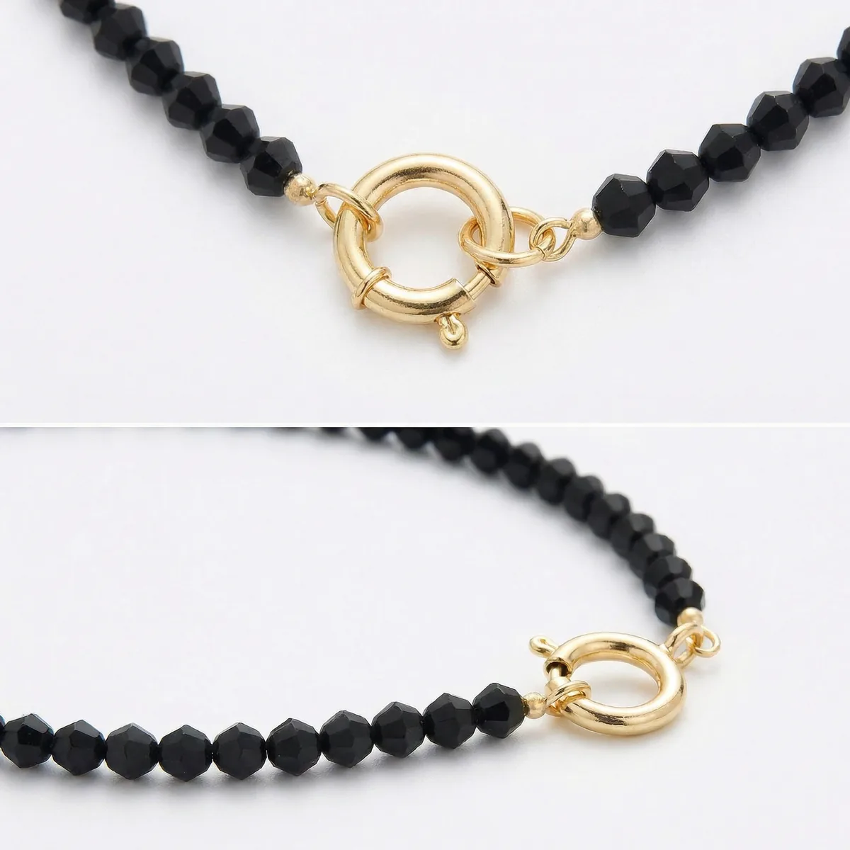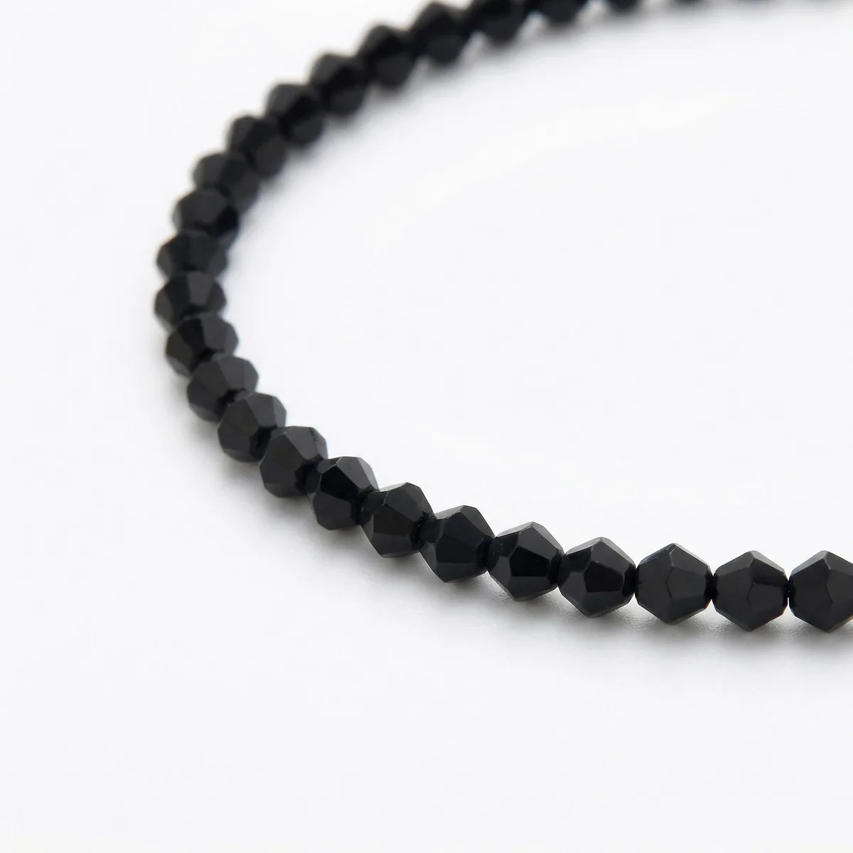 Лёгкий чокер из хрустальных бусин оттенка «тёмный графит». Глубокий, почти чёрный цвет и сдержанное мерцание фасетированных граней подчёркивают линии шеи и добавляют образу собранности и характера — без лишней громкости.